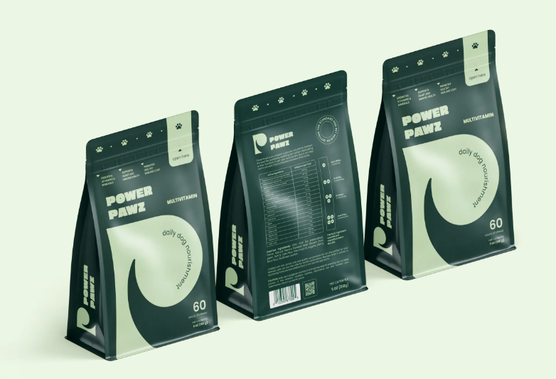 隨著寵物行業(yè)的快速發(fā)展,寵物食品和保健品市場日益龐大,消費(fèi)者對寵物健康的關(guān)注也達(dá)到了前所未有的高度。Power Pawz作為一個創(chuàng)新的寵物品牌,致力于提供科學(xué)配方的寵物食品和補(bǔ)充劑,以提升寵物的健康與活力。在這個背景下,Power Pawz的貓糧包裝設(shè)計(jì)不僅要在視覺上吸引消費(fèi)者的目光,還要在功能性和實(shí)用性上體現(xiàn)品牌的理念——為寵物提供最好的健康保障。包裝設(shè)計(jì)既要符合現(xiàn)代寵物主人的審美需求,又要簡潔、易懂地傳達(dá)產(chǎn)品的價值。